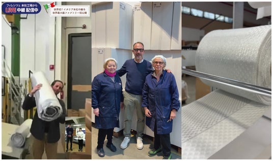 本企画では、世界99カ国に展開するイタリア・マニフレックス社において、史上初の試みとして本社工場の現場をLive中継で世界に初公開。ファクトリーの職人の様子や、世界に誇るマニフレックスのオートメーション化された内部の様子を紹介しました。放映では、イタリア本社屋をLiveのためにドローンで撮影したムービーや、20年以上にわたって勤める職人の紹介動画も公開されました。