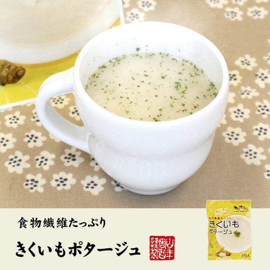 巣鴨のお茶屋さん山年園のインターネットショップにて、菊芋ポタージュの販売を開始いたしました。食物繊維たっぷりで菊芋の風味豊かなクリーミーなポタージュです。