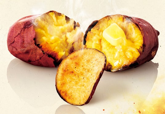 熟成芋の発酵バター味、熟成芋のクリームブリュレ風味 各味4袋入 1,047円(本体価格970円) *さつまいもは紅天使を使用しています。紅天使はカルビーかいつかスイートポテト株式会社の登録商標です。