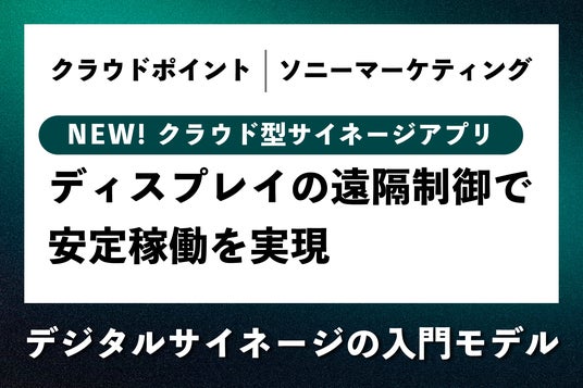 ペイクラウドホールディングス株式会社(東証グロース:4015)の傘下でデジタルサイネージ関連事業を展開する株式会社クラウドポイント(本社:東京都渋谷区、代表取締役:三浦 嚴嗣、以下、クラウドポイント)は、ソニーマーケティング株式会社(本社:東京都港区、代表取締役社長:川口大輔、以下、ソニーマーケティング)との連携により、ソニーの法人向けブラビア専用のデジタルサイネージアプリケーション「更新かんたんサイネージWEBCMS+(以下「本アプリケーション」)」を開発、2025年5月からサブスクリプション型*クラウドサービスとして販売を開始することをお知らせします。本アプリケーションはソニーが保有するクラウドサーバとの連携により、法人向けブラビアの遠隔制御に対応。スムーズで快適なデジタルサイネージ運用を実現します。
