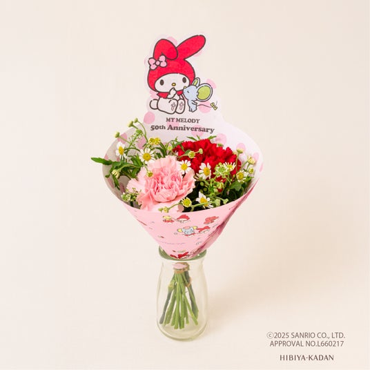 今年50周年を迎えたマイメロディと、花とみどりを通じて豊かなライフスタイルを提案する日比谷花壇がコラボレーションし、マイメロディの世界観を花で表現した特別なフラワーギフトが誕生しました。
