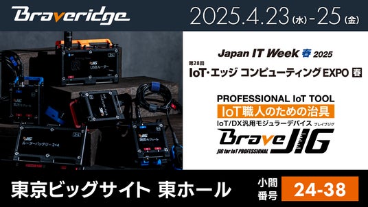 株式会社Braveridge(ブレイブリッジ、本社:福岡県福岡市西区、代表取締役社長 小橋泰成、以下Braveridge)は、2025年4月23日(水)~25日(金)に東京ビッグサイトにて開催されるJapan IT Week 春 2025『第28回 IoT・エッジコンピューティングEXPO 春』に出展いたします。