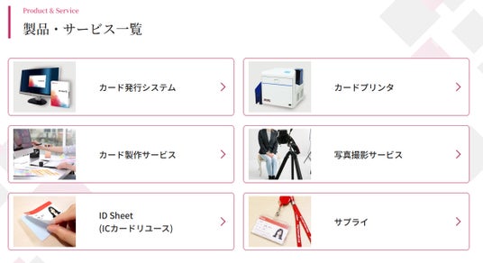 株式会社アイアンドディはIDカード発行の専門メーカーとして、IDカード発行・導入に必要なサービスをすべて行っている。その製品・サービス一覧を一目で判断し、トップページからクリックできるデザインに変更。