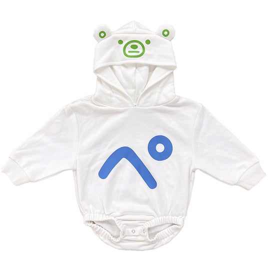 【内容】フード部分にファミッペの顔がプリントされたベビーウエアです。ポリエステルと綿の混合素材で80サイズです。
