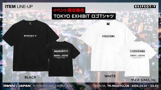 ●イベント限定 TOKYO EXHIBIT ロゴTシャツ 今回のイベントロゴをバックプリントであしらい、フロントにはタイトルロゴを配置したオフィシャル感たっぷりのTシャツとなっております。