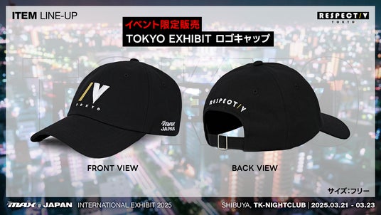 ●イベント限定 TOKYO EXHIBIT ロゴキャップ 『DJMAX RESPECT V』のロゴを正面あしらいつつ、左側面にはイベントロゴを配置。