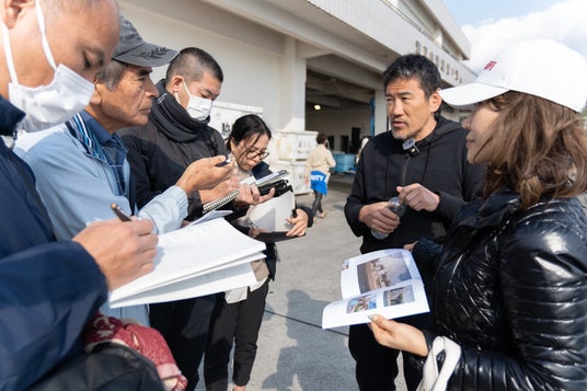 今回の視察では、実際にワインを海へ設置する工程を確認し、海底熟成のプロセスや環境への影響について理解を深めました。地元の新聞、メディアの他、共同通信社、NHKなどの囲み取材にも対応。
