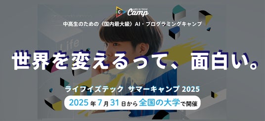 中学生・高校生向けのプログラミング教育サービス事業を手がけるライフイズテック株式会社(本社:東京都港区、代表取締役 CEO:水野 雄介)は、2025年7月31日(木)~8月23日(土)の期間、中高生向けプログラミング・AIキャンプ「Life is Tech ! Summer Camp 2025」を開催します。なお、4月30日(水)までは基本料金から2,750円(税込)割引にてお申込みいただけるお得な早割を実施します。