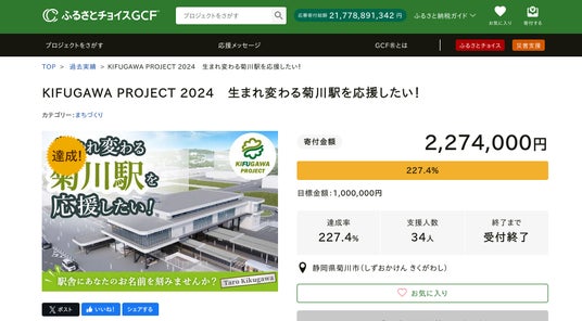 静岡県菊川市とふるさとチョイス、ふるさと納税制度を活用したガバメントクラウドファンディング(R)で、JR菊川駅の南北自由通路整備に向けた資金の最終募集を開始