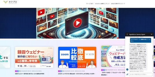ネクプロが提供する動画メディアサイト上にAgentforceを設置すれば、Agentforceがコンシェルジュの役割を担い、顧客課題を解決するおすすめのウェビナーや動画を案内することができます。