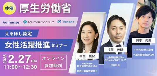 【無料ウェビナー開催2025.2.27】社労士法人代表が「えるぼし認定 女性活躍推進セミナー」に登壇|Authense法律事務所