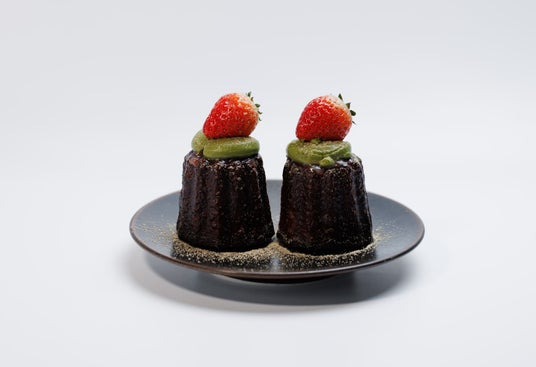 宇治抹茶クリームに、自家製の桜いちごソース&旬のいちごをトッピング。仕上げに きな粉 を振りかけ、和テイストのカヌレにアレンジしました。