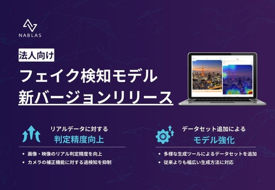 AI総合研究所として活動するNABLAS株式会社 (本社 : 東京都文京区本郷、 代表取締役 所長 : 中山 浩太郎、 以下「当社」)は、当社保有のディープフェイク検知ソリューションに対し、新たなデータの追加を行い、リアル画像・動画(生成AIを使用していない画像・動画)に対する判定の正確性を向上させるアップデートを実施いたしました。多様なデータセットを用いて検出モデルの強化を行ったことで、スマートフォンカメラ*に搭載されているフィルターや補正機能をはじめ、テロップ挿入などの映像加工が施されたデータに対する過剰なフェイク検知を抑制し、ディープフェイク検知ソリューションの判定精度向上を実現しました。