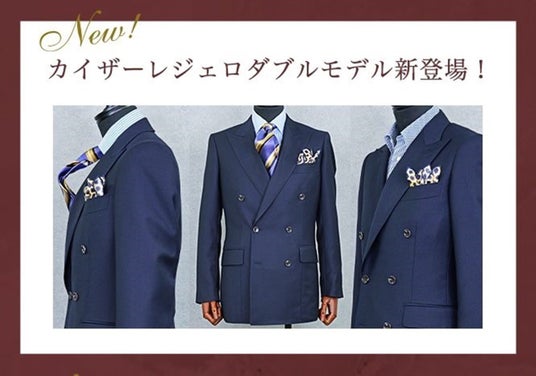 オーダースーツ専門店「グローバルスタイル」を運営するグローバルスタイル株式会社(東京証券取引所 スタンダード市場:7126、本社:大阪市中央区、代表取締役社長 田城弘志)の人気モデル「カイザー」に新たに「カイザーレジェロダブル」が登場しました。軽さが人気のレジェロモデルをダブルスーツでもお楽しみいただけます。