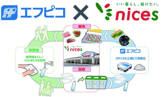 株式会社エフピコ(本社:東京都新宿区、代表取締役会長:佐藤 守正、以下「エフピコ」)は、株式会社ナイス(本社:秋田県秋田市、代表取締役社長:齋藤 寛之、以下「ナイス」) と協働し、現在ナイスの11店舗中9店舗で使用済み食品トレーの回収を実施しています。回収された使用済み食品トレーを新たな食品トレーに生まれ変わらせる「トレーtoトレー」及び使用済みペットボトルを回収して新たな食品容器に生まれ変わらせる「ボトルto透明容器」を実施し、再び売り場で積極的に「エコトレー」・「エコAPET」・「エコOPET」を使用する「ストアtoストア」の水平リサイクルの取り組みを拡大させます。 (※水平リサイクル:リサイクル前後で用途を変えずに資源を循環させるリサイクル法)