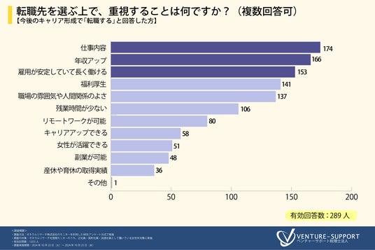 ・転職先を選ぶ上で重視することは「仕事内容」「年収アップ」「雇用が安定していて長く働ける」