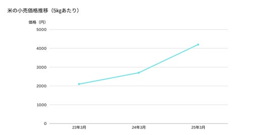 2025年の春には米の価格が前年比で約70%も高騰。これにより小売店では購入制限や品薄が続き、