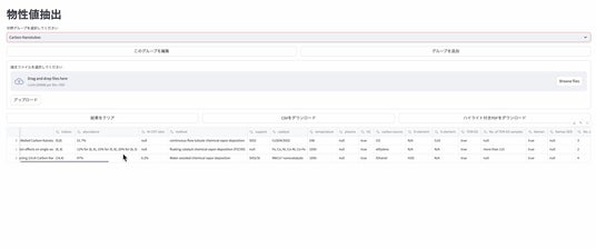 上記の設定を踏まえてLLMで物性値の抽出を行い、出力結果をcsvとpdf形式で出力します。pdfでは結果を素早く確認出来るように、抽出結果とその根拠となった箇所を紐づけて出力します。