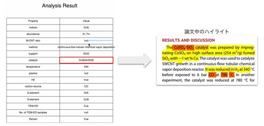また物性値は各論文ごとに様々な形式で記載されるため、対象の物性値を抽出するためにはキーワード検索といった従来の単純な手法では満足な抽出精度を達成できないという限界が有りました。