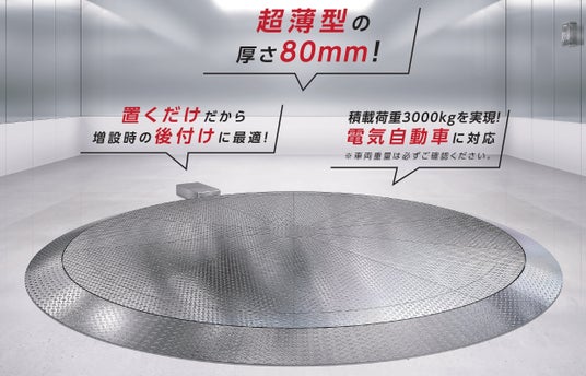 駐車場や店舗の床に置くだけで設置できる「ピットレスターンテーブル」を開発!車が乗り入れしやすい超薄型の厚さ80ミリを実現