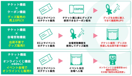本機能の追加によって、事業者はGroobeeで構築したグッズを扱うECショップでコンサートなどのチケットの販売が可能になります。ECショップの管理ページにおいてグッズとチケットの販売を一括して管理できるため、運用効率の大幅な向上が期待できます。また、ECサイトの利用ユーザーは一つのアカウントでグッズとチケットを購入することが可能になります。今回の新機能の提供により、Groobeeはグッズからチケットまで販売を一貫して行うことで事業者とユーザーのユーザービリティを向上させ、チケットとグッズの販売を組み合わせることでさらなる売り上げの向上に貢献します。