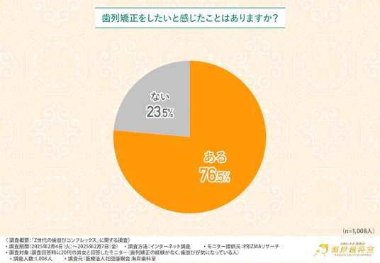 そこで今回、千葉市のインビザライン対応クリニックの『医療法人社団康樹会 海岸歯科室』(https://kaigan-do.com/)は、20代の男女を対象に、「Z世代の歯並びコンプレックス」に関する調査を行いました。