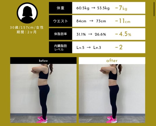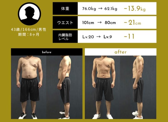 トレーニングは初めてでしたがすぐにコツを習得し、体重は-13.9kgに。