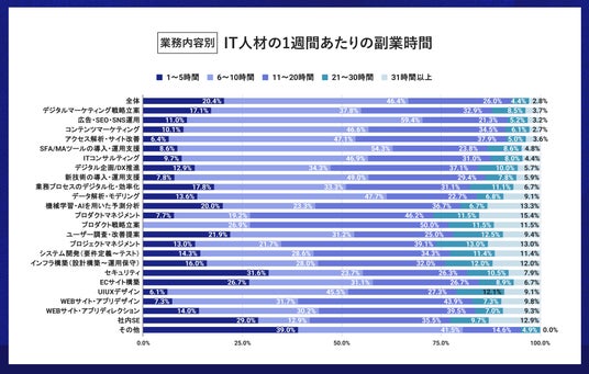 IT人材が1週間で、副業に費やしている時間は「6~10時間」が最多の46.4%
