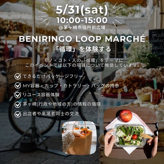 茅ヶ崎を拠点に環境問題やごみ問題について情報発信を行う20代の環境活動家ユニット「BENIRINGO(ベニリンゴ)」(田中藍奈・阿部汐里)は、2025年5月31日(土)に、茅ヶ崎市役所前広場にてマルシェイベント「BENIRINGO LOOP MARCHE」を開催いたします。