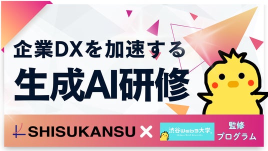 Web3に特化した実践型のプロジェクト創発コミュニティ「渋谷Web3大学」を運営する渋谷Web3大学株式会社(本社:東京都渋谷区、代表取締役:北村元)と株式会社boom now(本社:東京都豊島区、代表取締役:西川勇佑)は共同で、エンタープライズ企業のDX推進責任者向け生成AI研修プログラム「SHISUKANSU × 渋谷Web3大学監修プログラム」の提供開始を発表いたします。本プログラムは、ChatGPTをはじめとする生成AI技術の企業活用を推進する伴走型の研修サービスであり、ブランディングと組織改革のプロである渋谷Web3大学が監修することで、単なるスキル習得に留まらない戦略的DX人材育成を実現します。