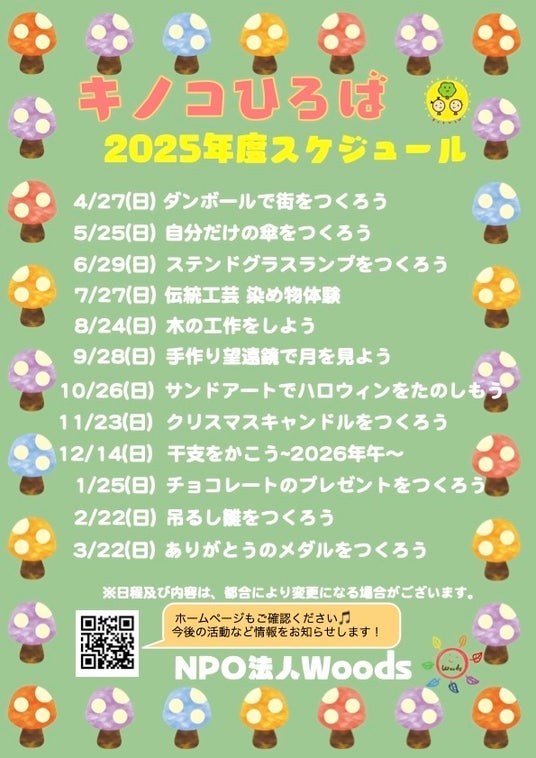 [キノコひろば] - NPO法人Woods主催、2025年度開催スケジュール公開