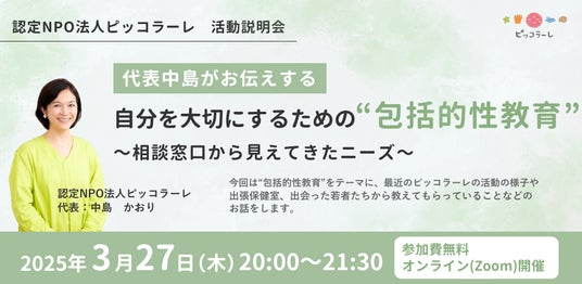 認定NPO法人ピッコラーレ(所在地:東京都豊島区、代表:中島かおり、以下ピッコラーレ)は、2月21日(金)から3月31日(月)まで、継続的なご寄付で私たちの活動を支えてくださる「ピコサポ」に新たにご登録くださる方を募集するキャンペーン「「包括的性教育」を広げよう ~ 生きていていい、そう思える社会をみんなで ~」を開催します。
