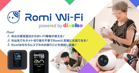 【会話AIロボット「Romi」購入者向けのモバイルWi-Fiサービス】「Romi Wi-Fi powered by dinomo」を本日2月26日(水)より提供開始