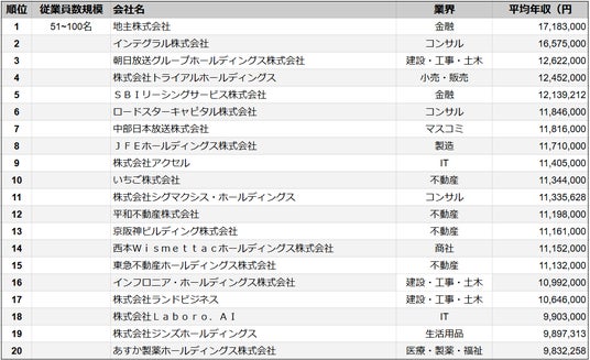 【2025年最新版】従業員数51~100名規模の上場企業 年収ランキングTOP20を発表/SalesNow DBレポート