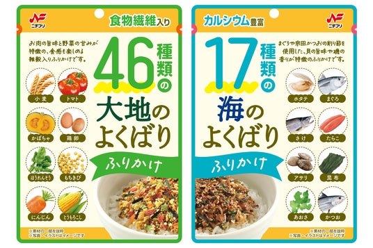 ニチフリ食品株式会社(所在地:静岡県静岡市 代表取締役社長:塩坂 恵理子)は、新商品「46種類の大地のよくばりふりかけ」、「17種類の海のよくばりふりかけ」を2025年2月26日(水)より発売いたします。