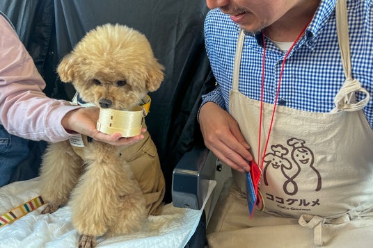 フレッシュドッグフード(※1)2年連続売上No.1(※2)、会員愛犬数30万頭(※3)を突破したワンちゃん用手作りごはんブランド「CoCo Gourmet(以下:ココグルメ)」、猫ちゃん用手作りごはんブランド「Miao Gourmet(以下:ミャオグルメ)」、猫ちゃん用ピューレ「にゃっち」を開発・販売する株式会社バイオフィリア(本社:東京都新宿区、代表:岩橋洸太、以下:当社)がワンちゃん用駅弁提供で協賛した、愛犬も座席に座って旅を楽しめるケージレス列車『わんだフルTRAIN』第3弾が4月12日(土)~13日(日)に実施されました。往路の車内ではJR東日本で初の取り組みとなるワンちゃん用の駅弁「ココグルメのシュウマイ弁当」を提供しツアーを盛り上げました。