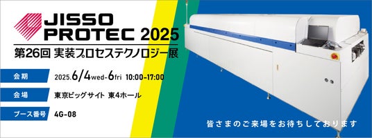 - 名 称:JISSO PROTEC 2025(第26回 実装プロセステクノロジー展)- 会 期:2025年6月4日(水)~6日(金)10:00~17:00