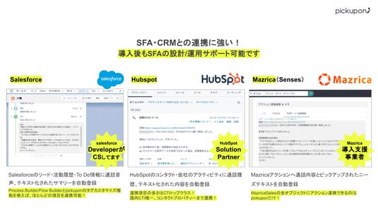 ※pickuponはHubSpotをはじめとするSFAとの親和性が高いのが強み。