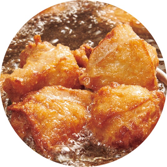 鶏肉は、にんにく、生姜、醤油を独自のブレンドで配合したタレに漬け込み、豊かな風味を効かせつつ、素材本来の味と旨味を引き出します。衣は、時間が経っても食感が感じられるよう、小麦粉や米粉、でんぷんの配合を工夫。バッター液をよく絡ませて揚げることで、衣で鶏肉をコーティングして肉汁を閉じ込め、ジューシーな「から揚」に仕上げます。