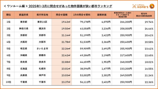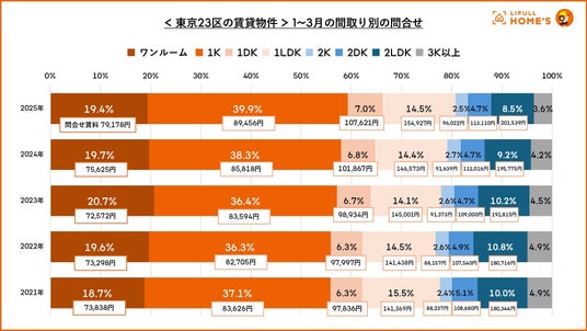 事業を通して社会課題解決に取り組む、株式会社LIFULL(ライフル)(本社:東京都千代田区、代表取締役社長:伊東祐司、東証プライム:2120)が運営する不動産・住宅情報サービス「LIFULL HOME'S」は、首都圏の掲載賃料が過去最高※1となった2025年の住まい探しの繁忙期において、東京23区や全国の単身向け物件ワンルーム、1Kの問合せデータを調査しました。
