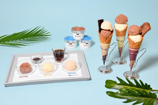 ・ブロンドチョコレートアイス:ホワイトチョコレートをローストしたブロンドチョコレートを使ったアイス。ミルクキャラメルのような、深みある甘味ながら後味さっぱりとした味わい。