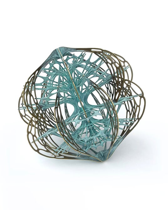 透かし彫りとロウ付による生命の息吹や小宇宙を感じる集合体を生み出す久米圭子氏。