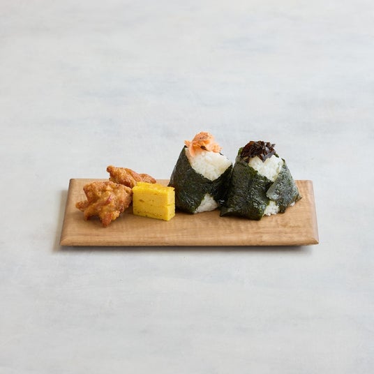 おにぎり2個(焼き鮭・しそ昆布/紀州南高梅・旨ツナマヨ)、「秋川牧園」の鶏肉を使用した唐揚げ、「つきぢ松露」の玉子焼きがセットになったランチボックスを2種類ご用意。