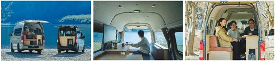 「mobica」は約30年にわたって働く場をつくるオフィス事業を手掛けてきたGOOD PLACEが考えた、好きな場所へ移動しながら車内外で快適に働くことができるワーケーションカーです。コンセントやWi-Fiを完備した車内では、旅先でも快適な作業環境が確保でき、シートを倒すとベッドスペースにもなるため、毛布や枕などを持ち込めば車中泊も可能です。車両はハイエース(TOYOTA)とN-VAN(Honda)をワークスペースに架装した2種類展開。利用人数や業務内容に応じて選択できます。