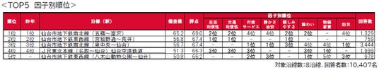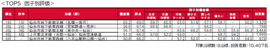 街の住みここち沿線ランキング2024<仙台都市圏版> TOP5の因子別評価&順位