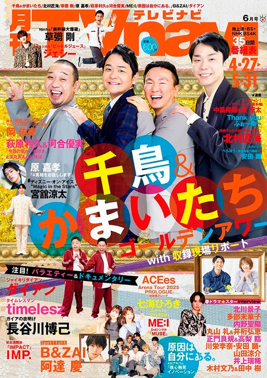 千鳥&かまいたち 爆笑の収録現場公開 TVnavi6月号 好評販売中