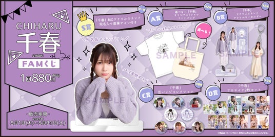 ファンエンゲージメントプラットフォーム「FAM」の企画・開発・運用を手掛ける株式会社Nagisa(本社:東京都渋谷区、代表取締役社長:横山佳幸)は、オンラインくじサービス「FAMくじオンライン」において、<『深川瑠華』FAMくじ>、<『渡瀬結月』FAMくじ>、<『千春』FAMくじ>を2025年5月1日(木)15:00より販売開始いたします。