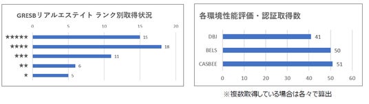 GRESBリアルエステイト ランク別取得状況、各環境性能評価・認証取得数
