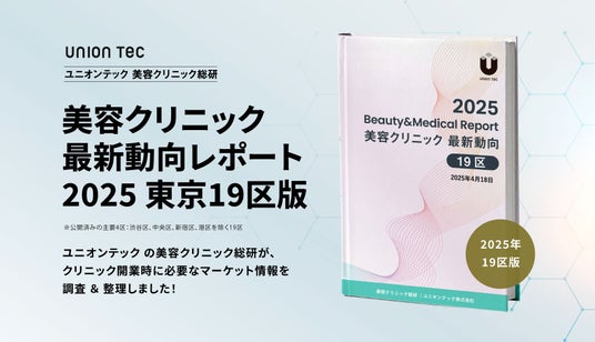 美容医療クリニックをはじめとしたクリニックデザインや、オフィスデザイン・設計施工をワンストップで行うユニオンテック株式会社(本社:東京都渋谷区 代表取締役社長:大川 祐介 以下、ユニオンテック)は、美容医療クリニックの開業を検討するドクター向けに「美容クリニック最新動向」の2025年19区版(全11ページ)を無料公開いたしました。今後も引き続き、大阪、名古屋といった全国主要エリアのデータも順次公開を予定しています。