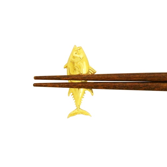 釣り上げた瞬間の鮪を再現した金属製の箸置きです。